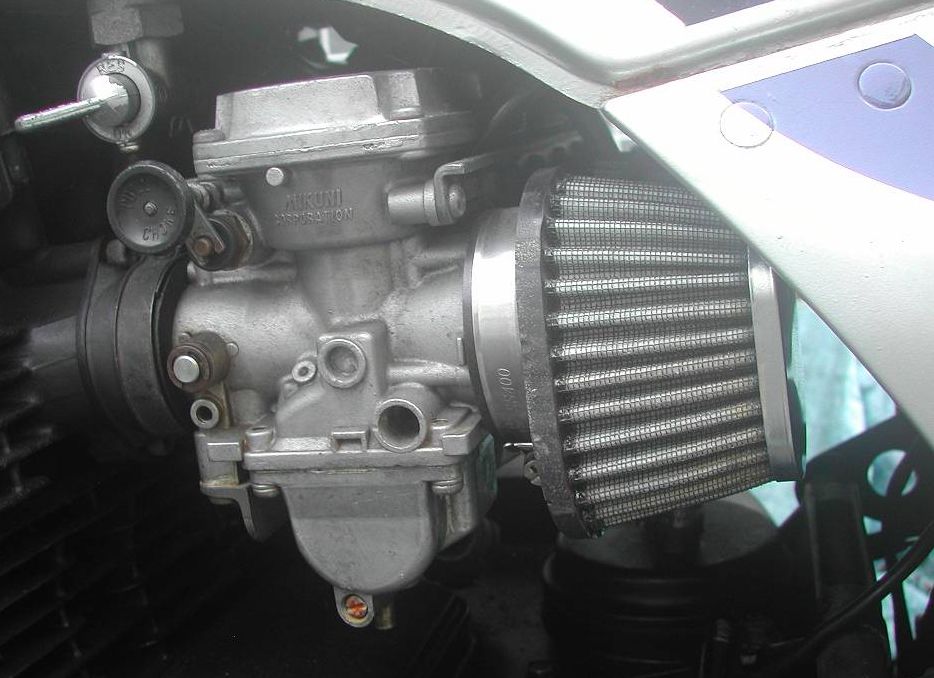 取り付けでは1,2番,3,4番のキャブピッチが殆どこのエアフィルタの幅と同じで,ほぼ接触してしまっていますが,まあ付けている状態で,これが起因してエアフィルタが脱落したりすることはないでしょう.それにしても楕円断面なので,今まで下周りがスカスカに見えていたのが少しボリューミーになって,ちょっと得した気分です.まあ少しでも多くのエアを吸うためにフィルタ面を少しでも多く確保したいというのがその理由なんですが,それだと逆に薄くなってしまうのでは?と心配になったりします.でも取り外した元々の中国製激安フィルタに比べるとずいぶんフィルタ素材も厚みがあって,流入抵抗は上がっているとも感じとれます.とにかく試運転してみないことにはわかりません.