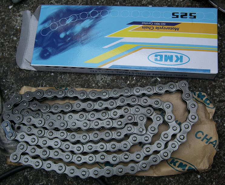 車検を取って走り回れるようになったものの,インプレがちゃんとできるほどに走り込めない理由が1つありました.それはチェーンです.そもそも元車体についていたチェーンは錆が激しく使えるものではなかったために,1000km程度走行と銘打たれて出品されていた中古の525のシールチェーンを使ったのです,ただそのチェーンのメーカーが不詳であったのと,カシメコマをぶった切ったような感じで出品されていたので,それに合わせてEKチェーンのシールチェーン用のクリップタイプのコマを購入し使用していたのです.
