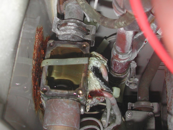 なんと思いっきりエビ反っているいるではないですか.まさか初めっからこうなっていた筈はなく,これは恐らく凍結によるものでしょう.確かに写真でお分かりのとおり,もう凍結防止ヒーターも濡れ濡れで逝かれかかっているような状態.まあヒーターを直すのは大変ですが,この水漏れをなんとかすることぐらいは出来そうです.