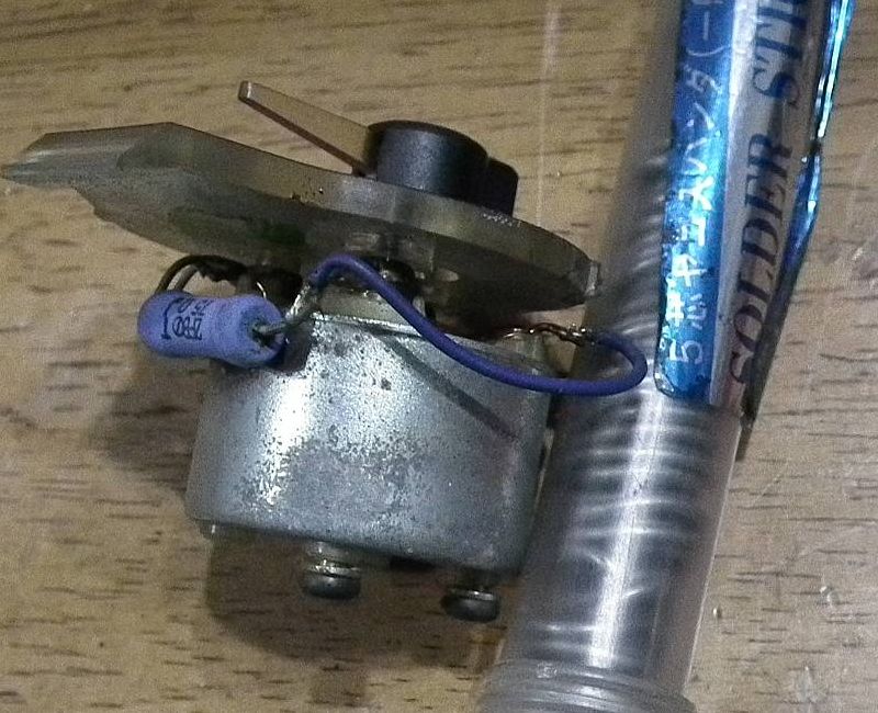 で,水温計を取り外してみて見たところ,どう見ても怪しい配線が一つありまして,写真のように見事に黒/黄と茶の端子を短絡させてしまっています.ちなみに他にニンジャのメーターASSYがあったりしますし,ZZ-R400N型の水温計も見てみたのですが,こんなジャンパ線はついていません.そういえばこの水温計はジャンクパーツ一式で購入した部品の中の一つで,それを水温計が欠品していたGPZ1000RXのメーターASSYに取り付けておいたのをうっすらと思いだしてきました.なぜこの水温計がジャンクパーツの中にあったか,ようやくわかったということになります.で,この水温計ですが,それなりに使えそうな雰囲気を醸し出しています.なのでこのジャンパ線を半田ごてで除去して,再びメーターASSYに戻します.