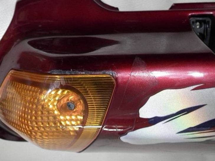今まで外装は一切触れてきませんでしたが,ここらへんでまとめて一気に行きます.まずはテールカウルですが,これは元の種車には欠片ぐらいは残っている程度しかありませんでしたので,1式を購入したいところです.できればリアウィンカーも両方ともダメだったので,テールランプ周りの外装部品も含め,一括で購入できるものをということで探していたところ,それなりに程度のよさそうな出品で,テールランプ周りも同時出品しているものを見つけました.とにかく大物部品でありますので,できるだけ同梱して送ってもらうということで,どうせ新しい年式の外装はきれいなものは出ていないし,あっても傷」や割れがあるということで所詮処理や再塗装が必要なので色はこだわらずにチョイスしました.