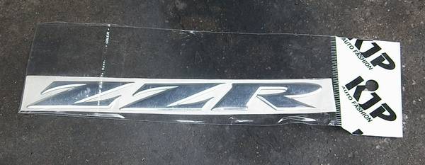 で,フロントカウルにも左側に傷がありまして同じように補修したのですが,この部分にZZRの立体デカールがありまして,これが破壊されています.なので,この立体デカールを純正新品で調達しようとしたのですが,なぜかこれをヤフオクで売っている人がいまして,それを調達.包装を見る限り限りなく純正とは違うように見えますが,ここらへん出品者の方も誰かから買ったといっていましたので(それでも知的財産的にアウトでしょう),とにかく怪しいとしか言いようのないロゴを貼ってひとまず外装は終了.